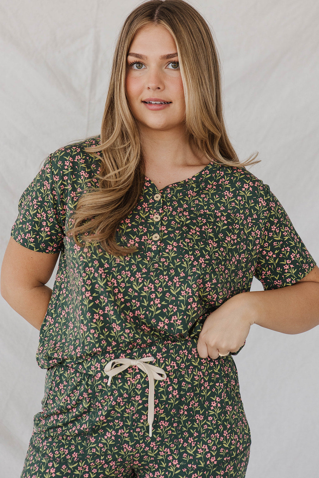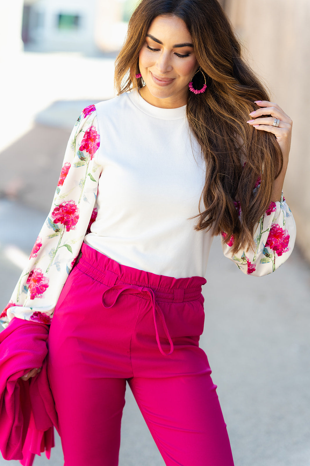 Watercolor Floral Sleeve Ribbed Body Blouse