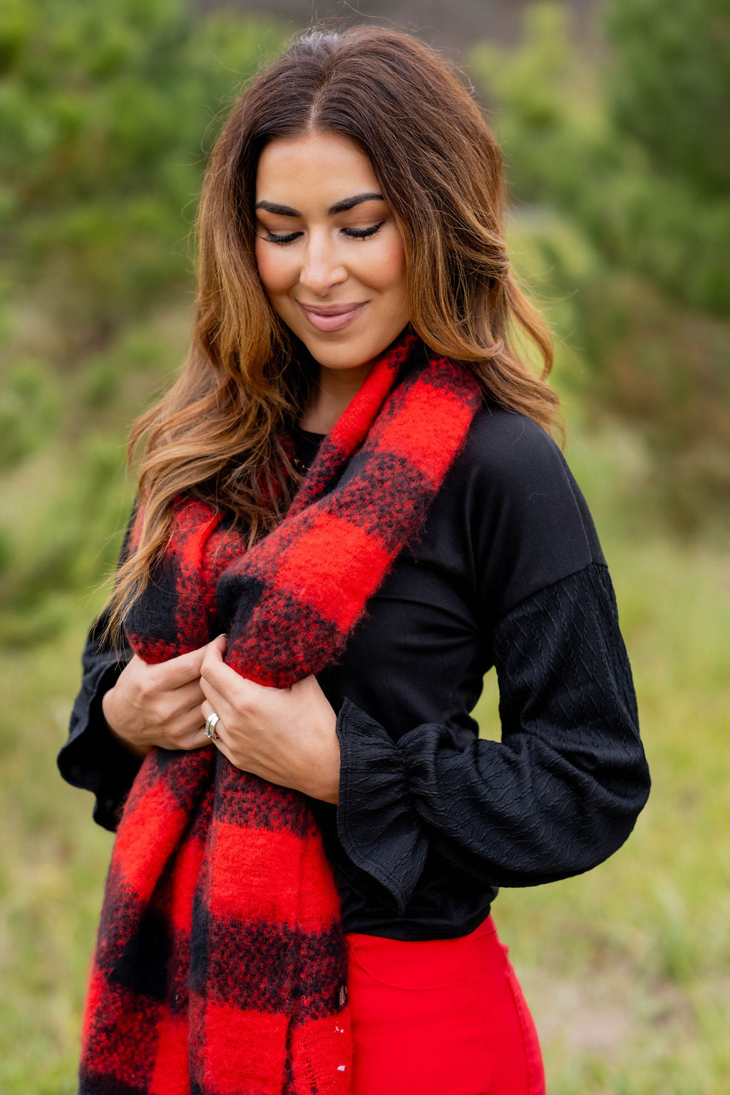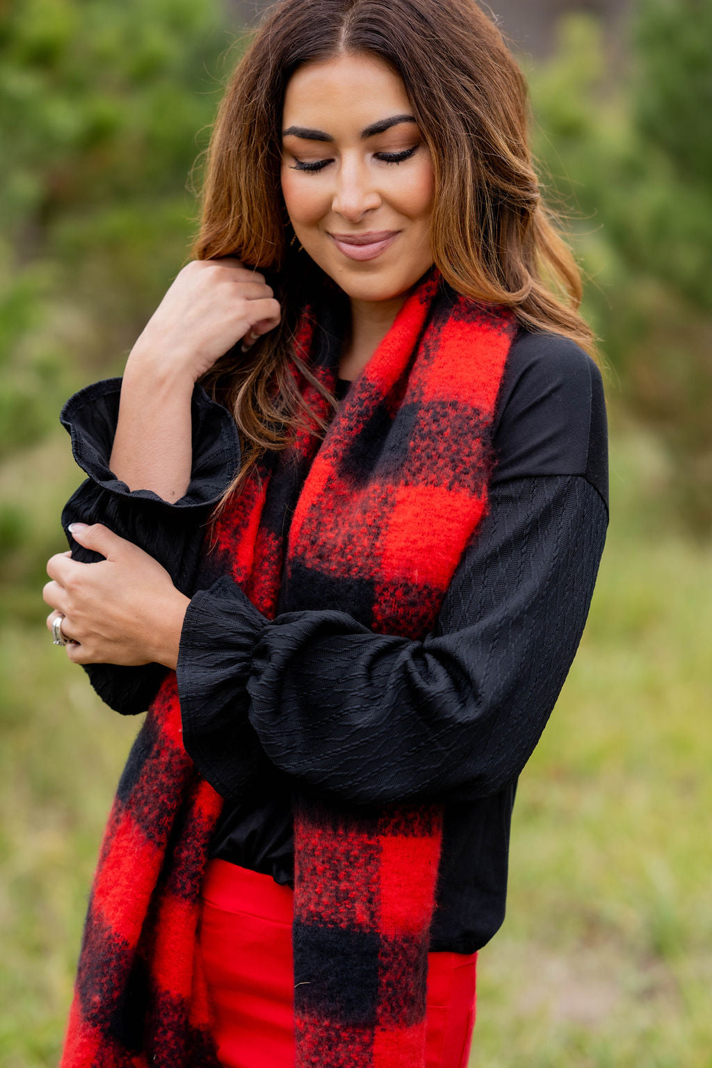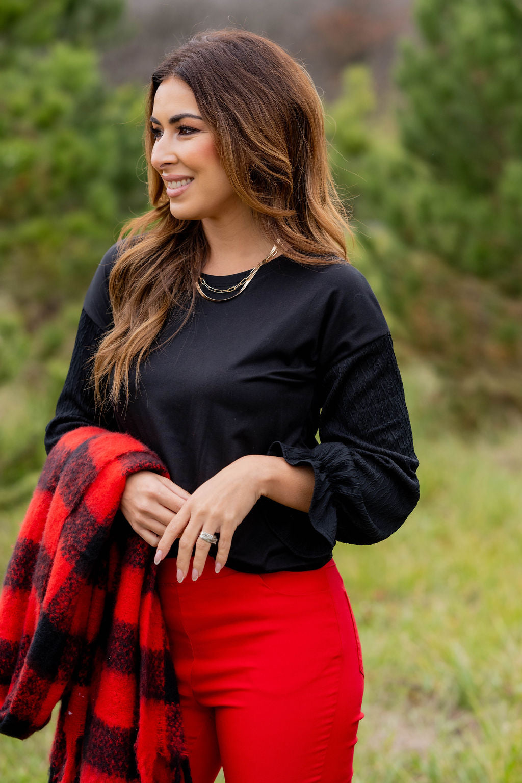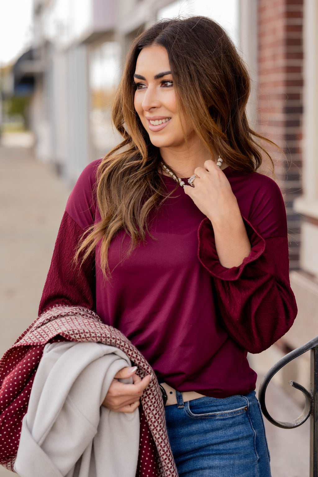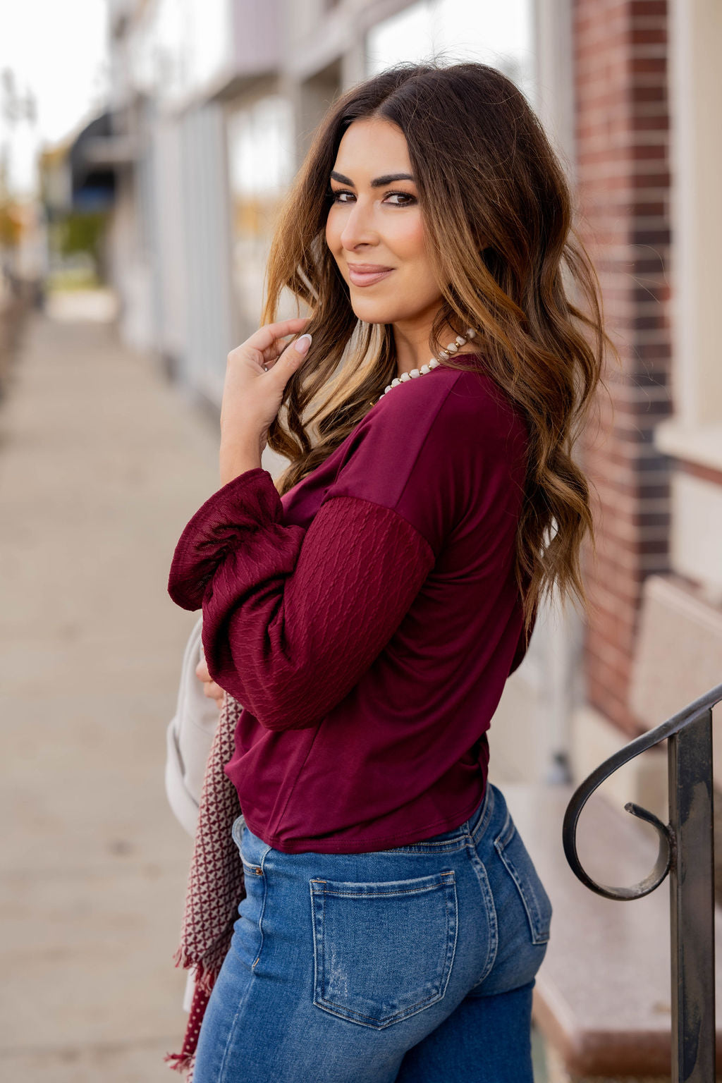 How cute is this blouse? With the braided texture statement sleeves and the solid body, this is a piece that you can dress up or down, depending on what you want! The cinched detailing on the sleeves elevates this top. It also looks great with a cardigan, vest, blazer, or jacket over it!