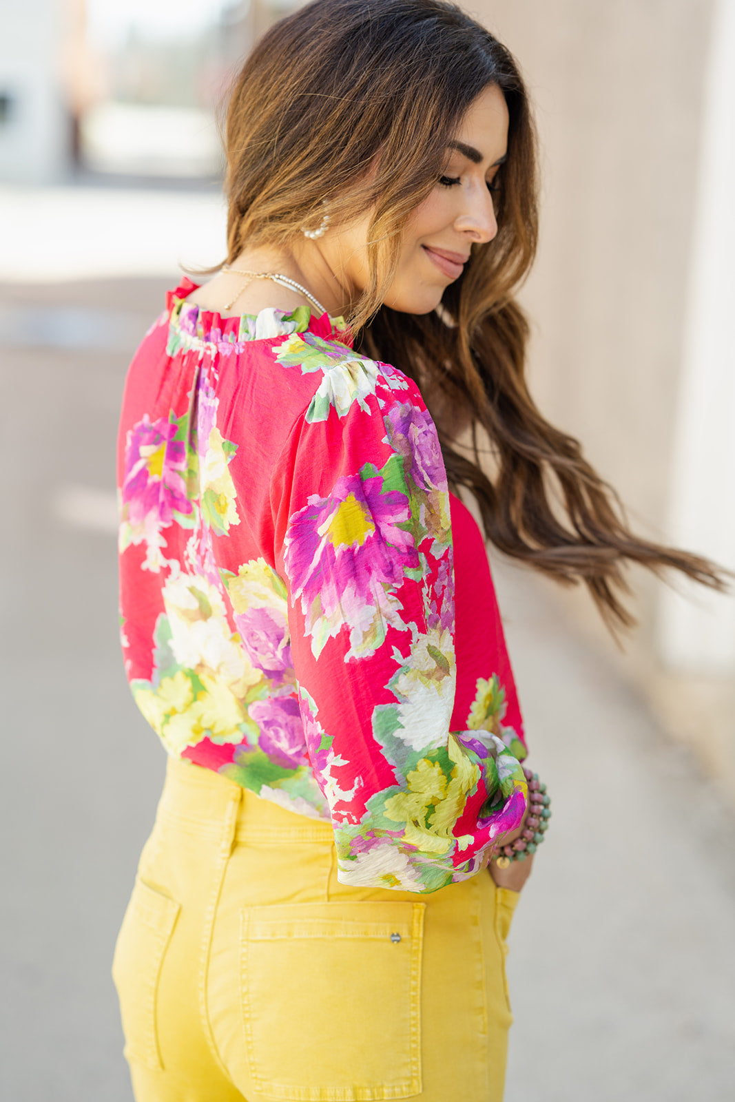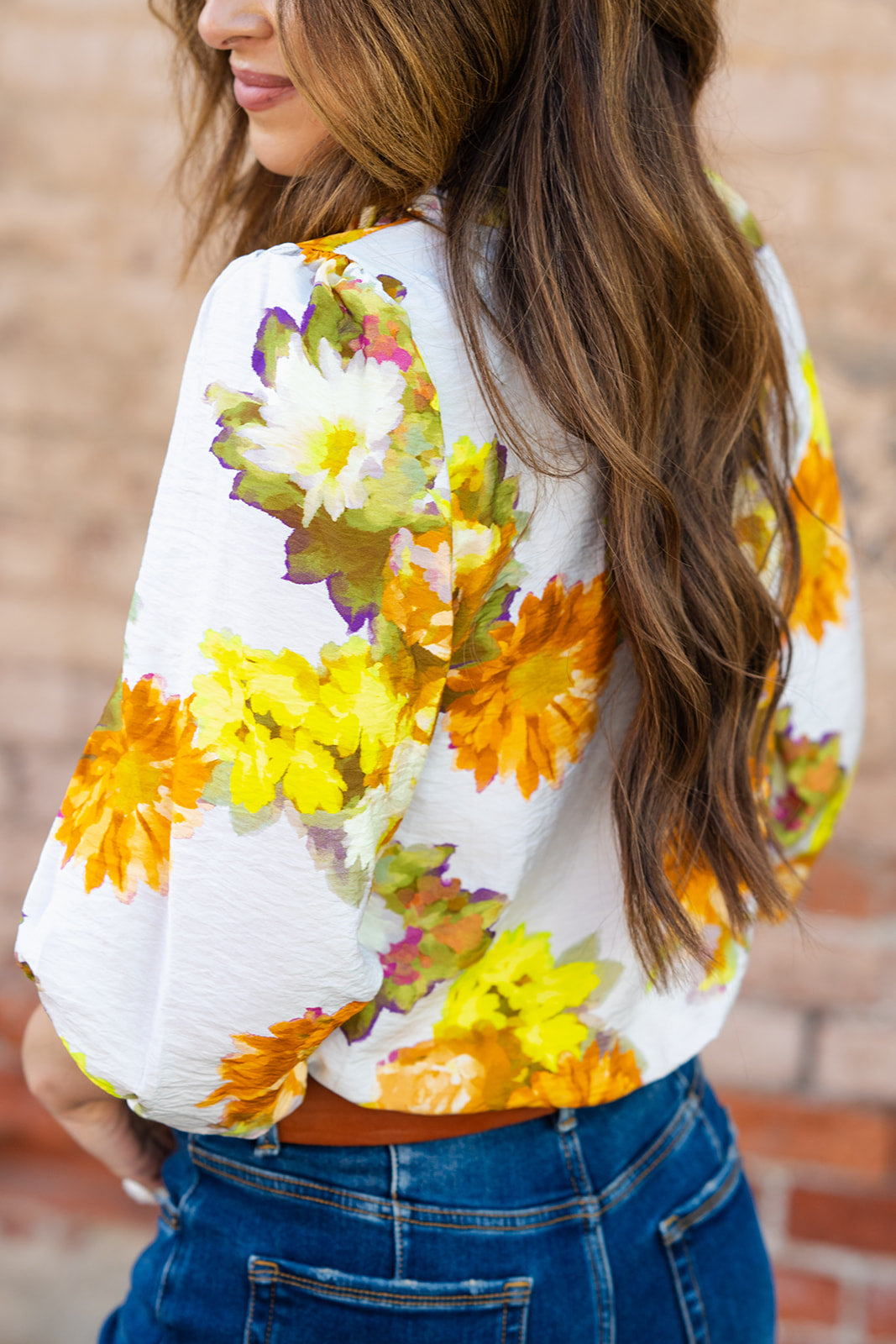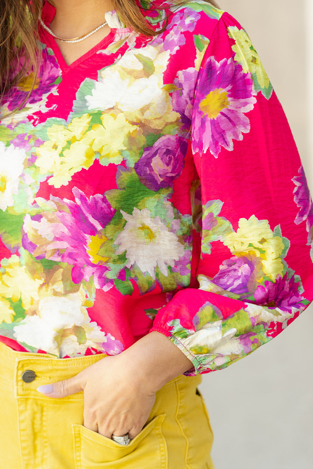Love to look cute and fancy? This is the one for you! This cute floral blouse is an absolute dream! It has a cinch sleeve and neck, and looks great with jeans, a skirt, joggers, or your favorite denim! Just add your favorite accessories to make the look truly yours.