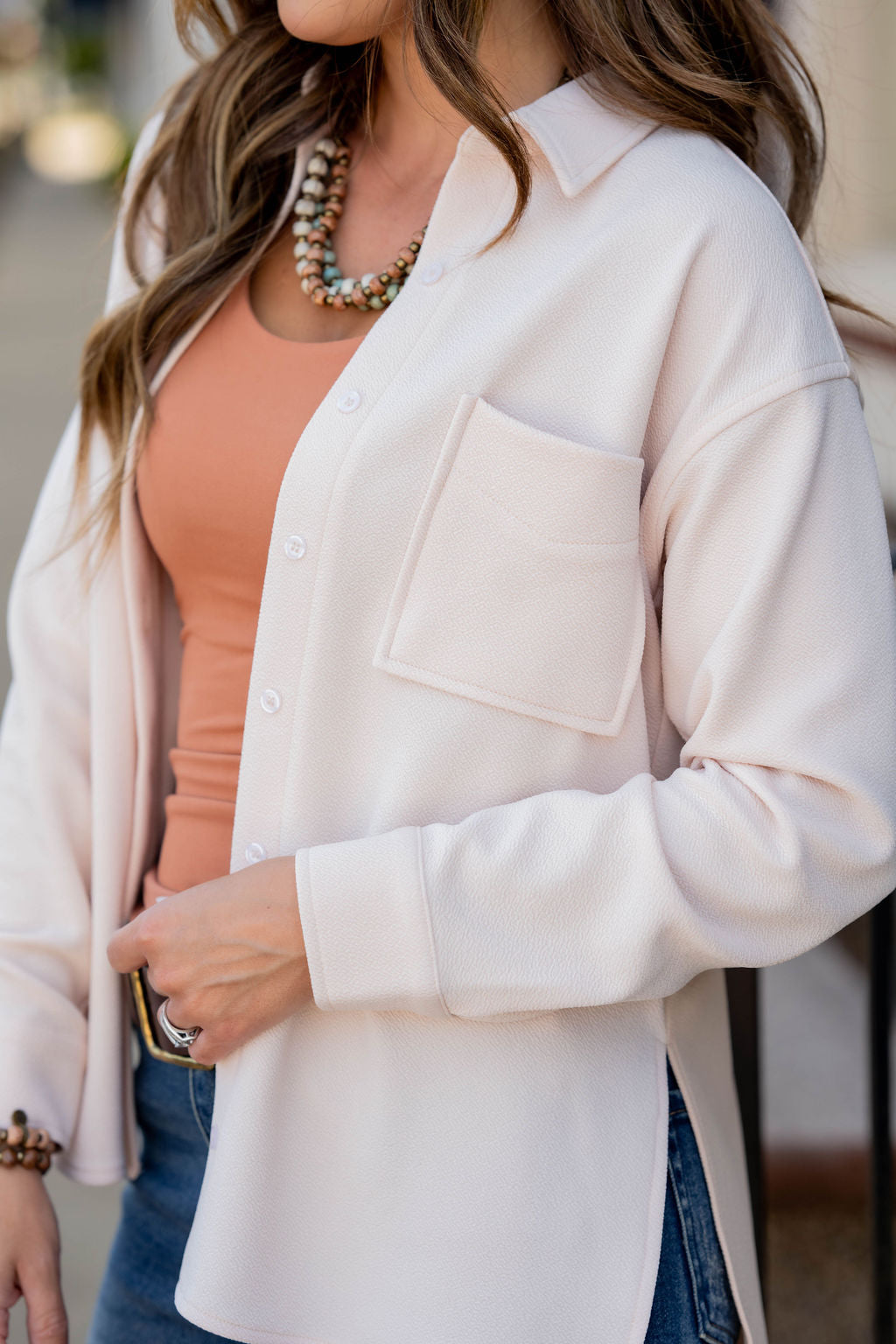 Wear this blouse as a button up or leave it open and layering it over a graphic tee or basic tee for a different look! It is lightweight and flowy and a great versatile piece to have on hand! The side slit really elevates the look of this blouse.