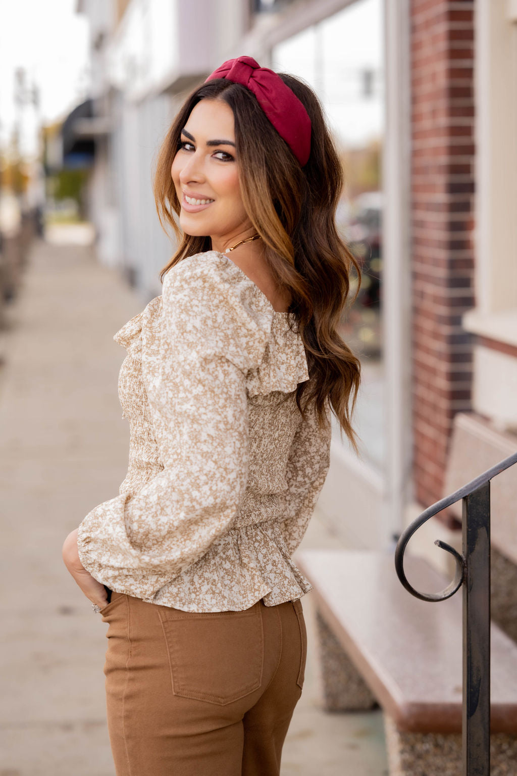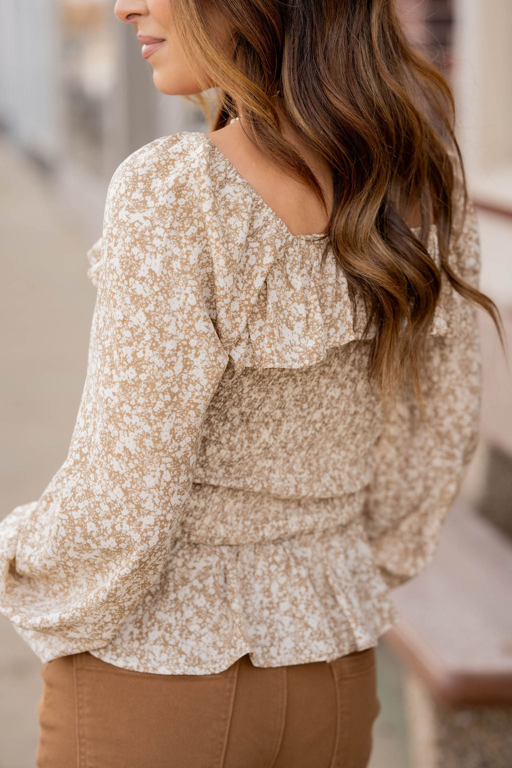The fun micro floral print with the tight ruched top and flowy peplum style bottom looks great on all body shapes and sizes! Pair with shorts or a skirt with the lightweight material in the warmer months or with denim, joggers, or our Betsey's Jeggings in the cooler ones!