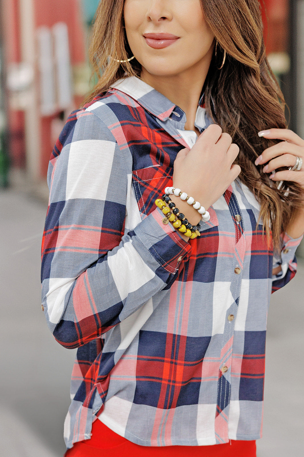 Plaid is always in style! Pair with a pop of color from a pair of our Betsey's Jeggings, over top of a graphic tee with leggings, or with a simple pair of joggers or your favorite denim! The possibilities are endless, making them a staple piece in every girls wardrobe! Wear this closed as a blouse or open over a basic or graphic tee.