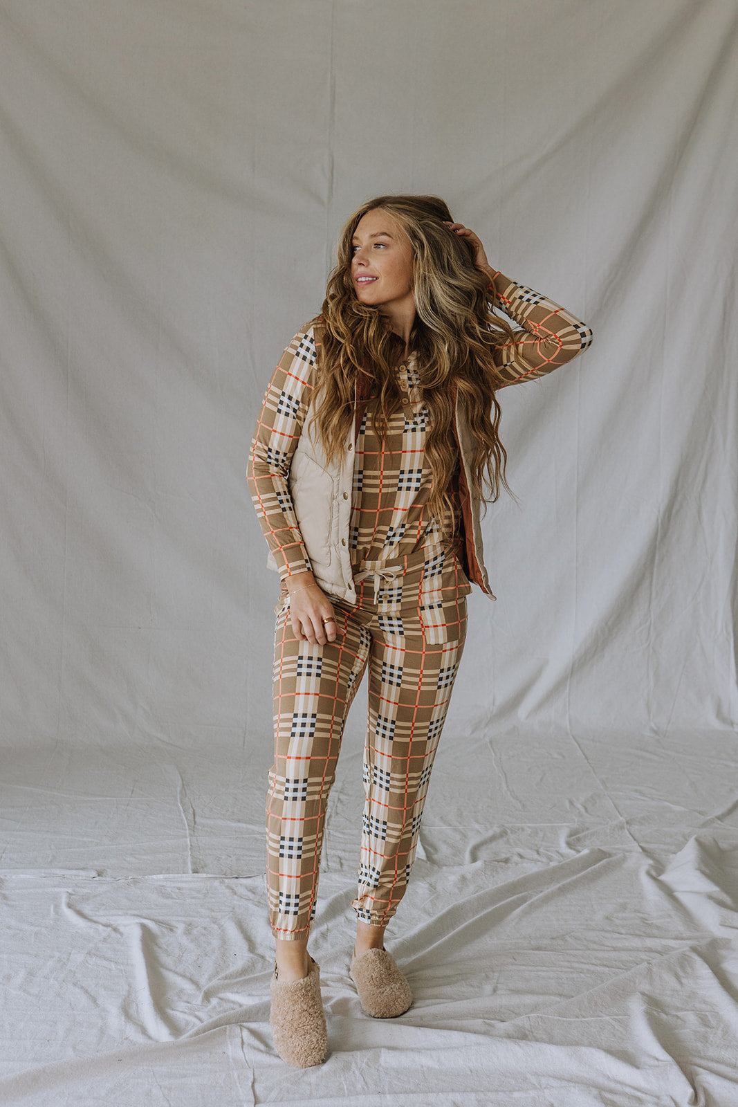 Introducing the LATEst addition to our dreamy collection: the soft and stylish Henley Set. This set has all the comfort of our classic style, with added details that make it truly stand out. Featuring a soft V-neck, buttoned Henley top, and relaxed-fit pants with a tapered ankle, it’s crafted from the same buttery-soft modal you know and love. Whether you're lounging at home or stepping out for errands, this set offers the perfect blend of comfort and style.Materials & Care