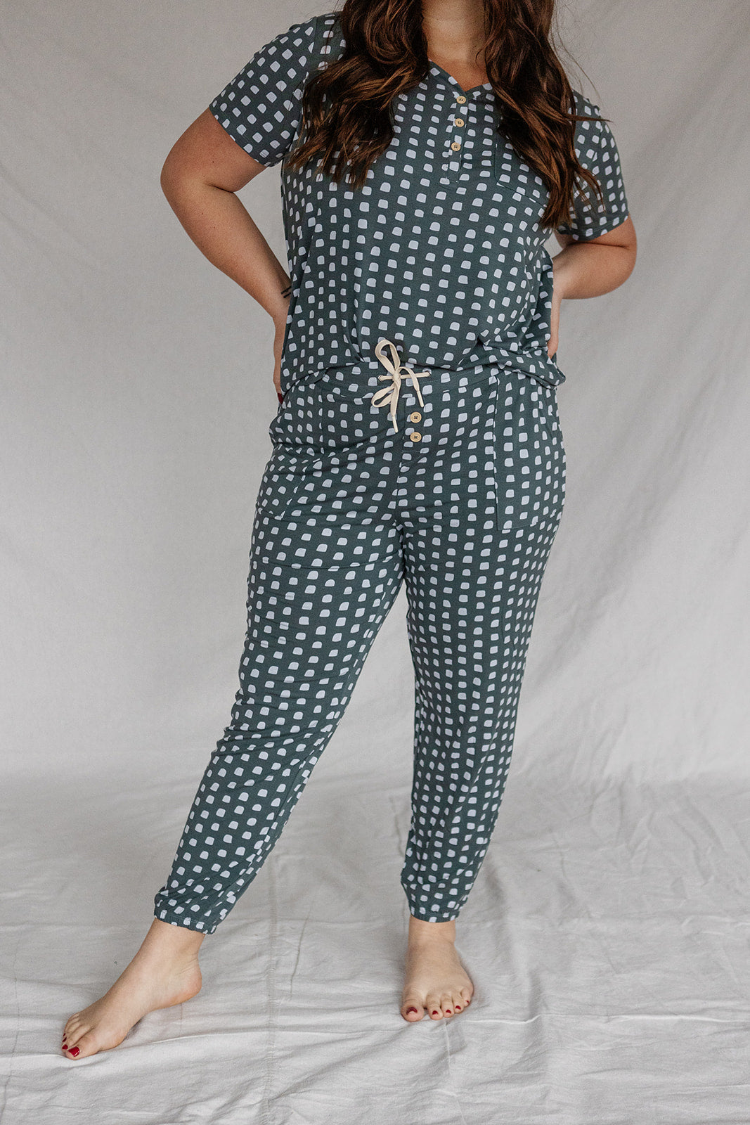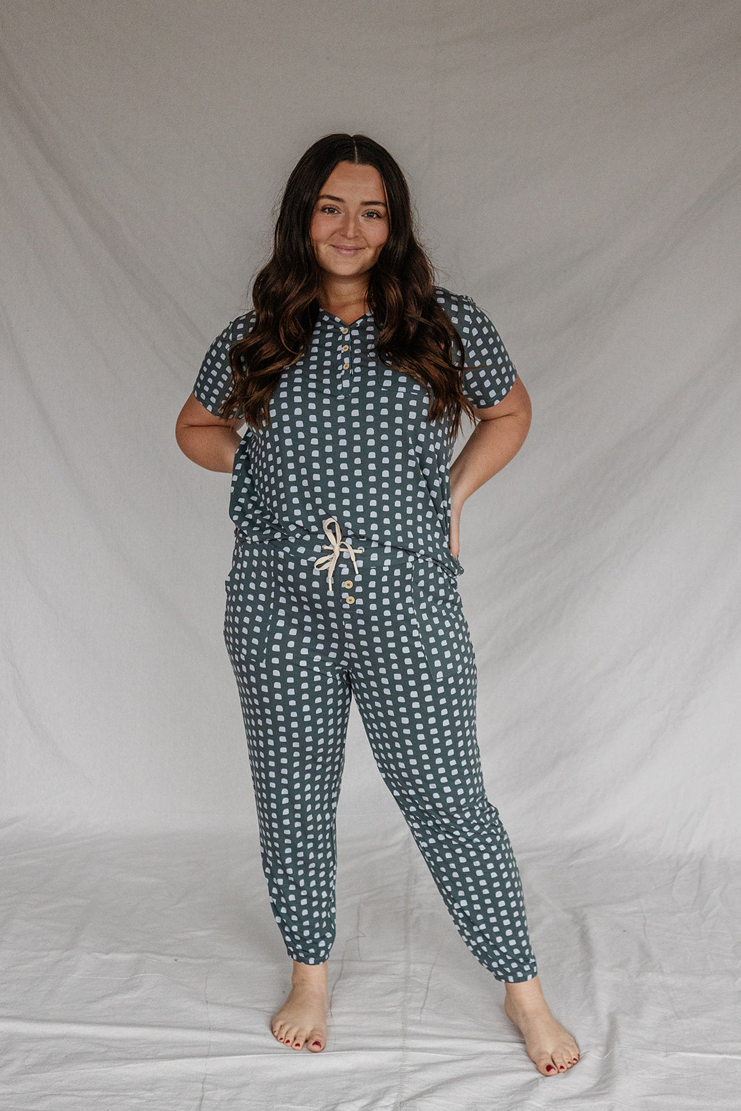 Introducing the LATEst addition to our dreamy collection: the soft and stylish Henley Set. This set has all the comfort of our classic style, with added details that make it truly stand out. Featuring a soft V-neck, buttoned Henley top, and relaxed-fit pants with a tapered ankle, it’s crafted from the same buttery-soft modal you know and love. Whether you're lounging at home or stepping out for errands, this set offers the perfect blend of comfort and style.