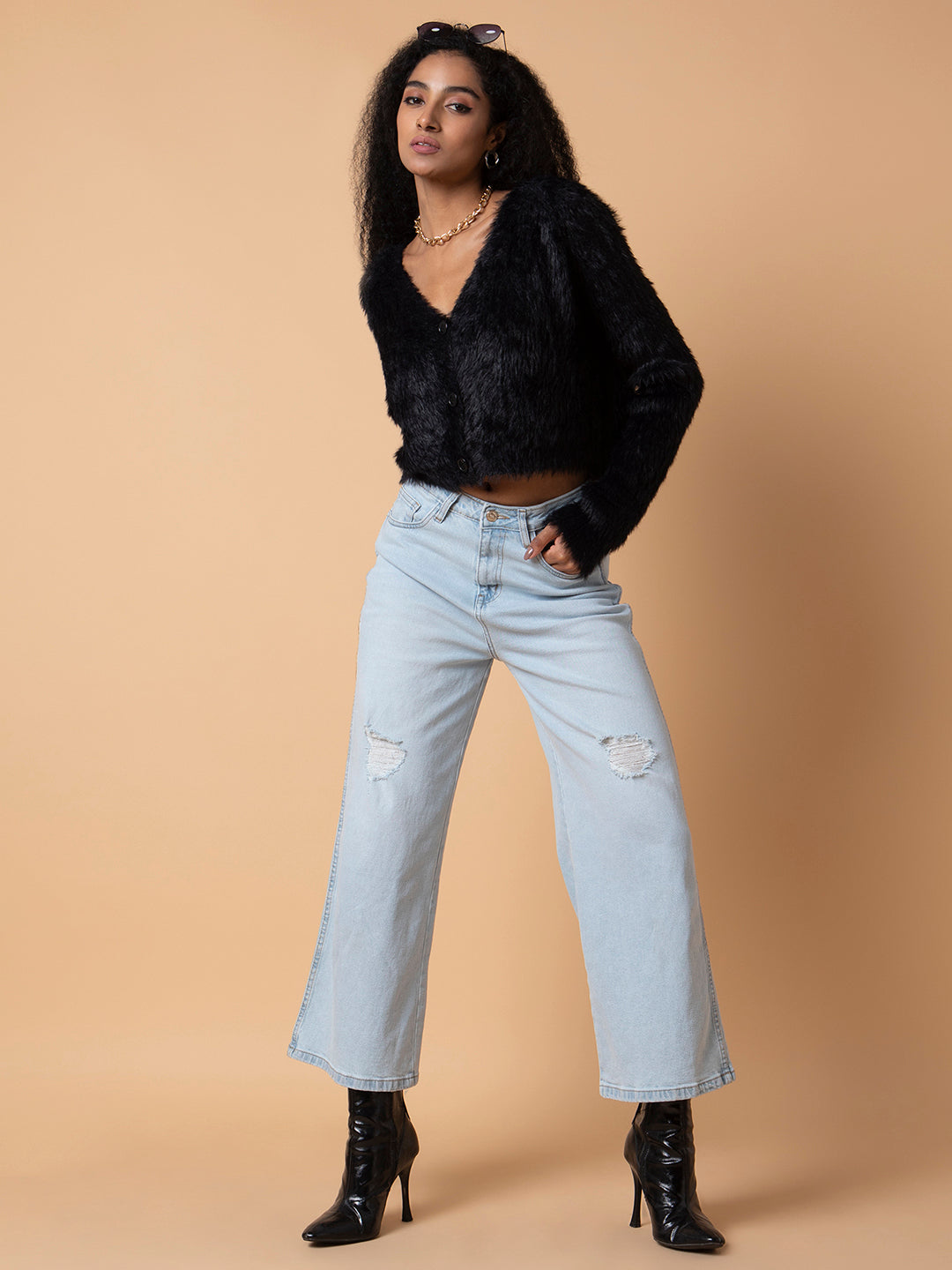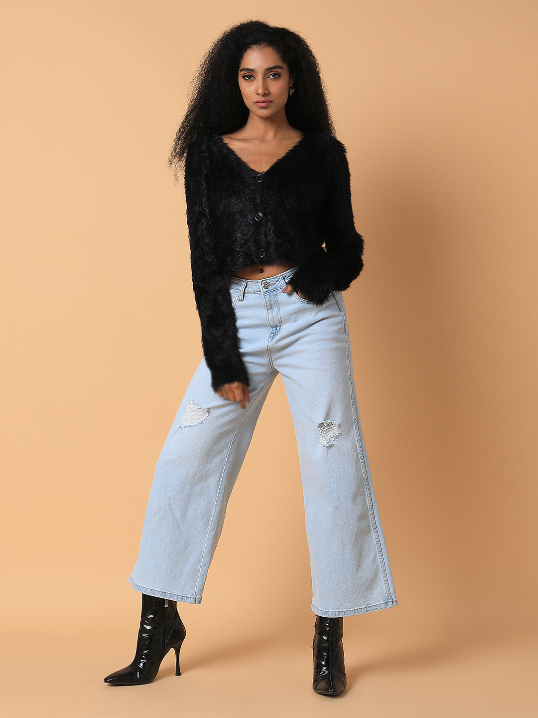 Experience ultimate comfort and style with our Women Solid Black Oversized Cardigan, perfect for layering and adding a sophisticated touch to any outfit.