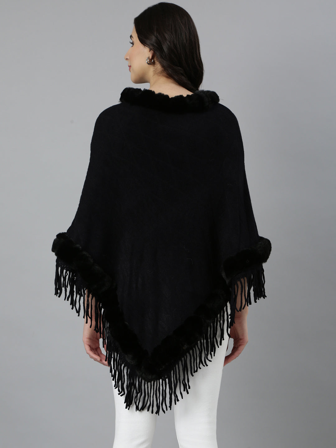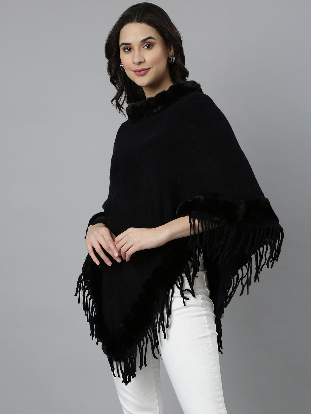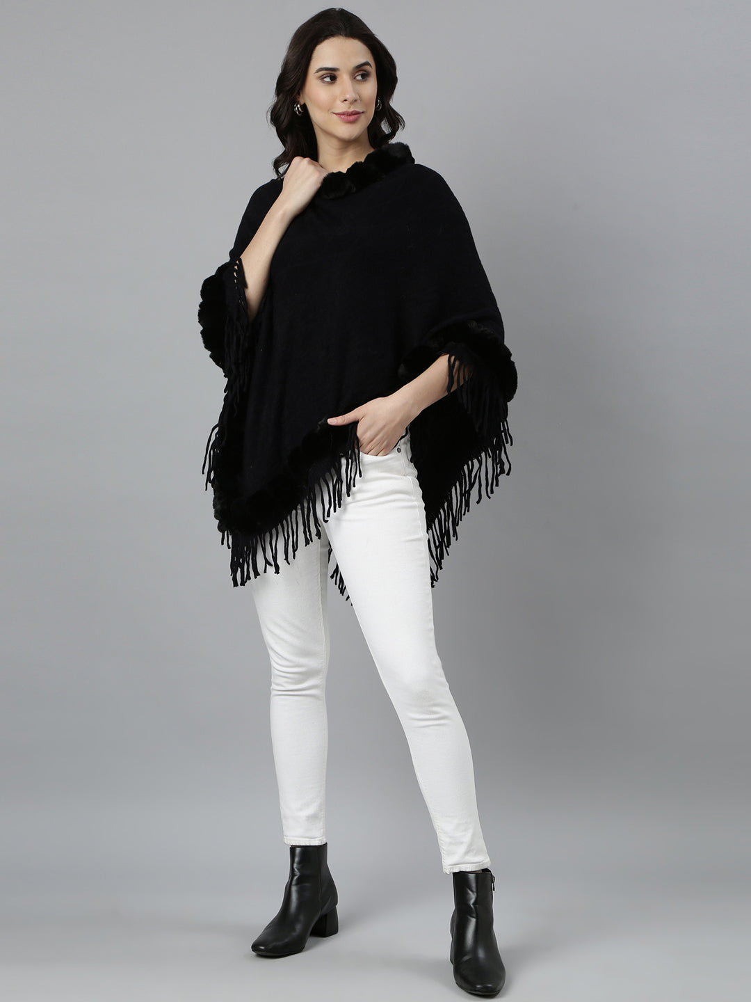 This poncho not only enhances your style but also provides comfort and warmth on chilly days. Its timeless black color ensures it pairs well with any outfit, making it a staple in your wardrobe that you'll reach for again and again.