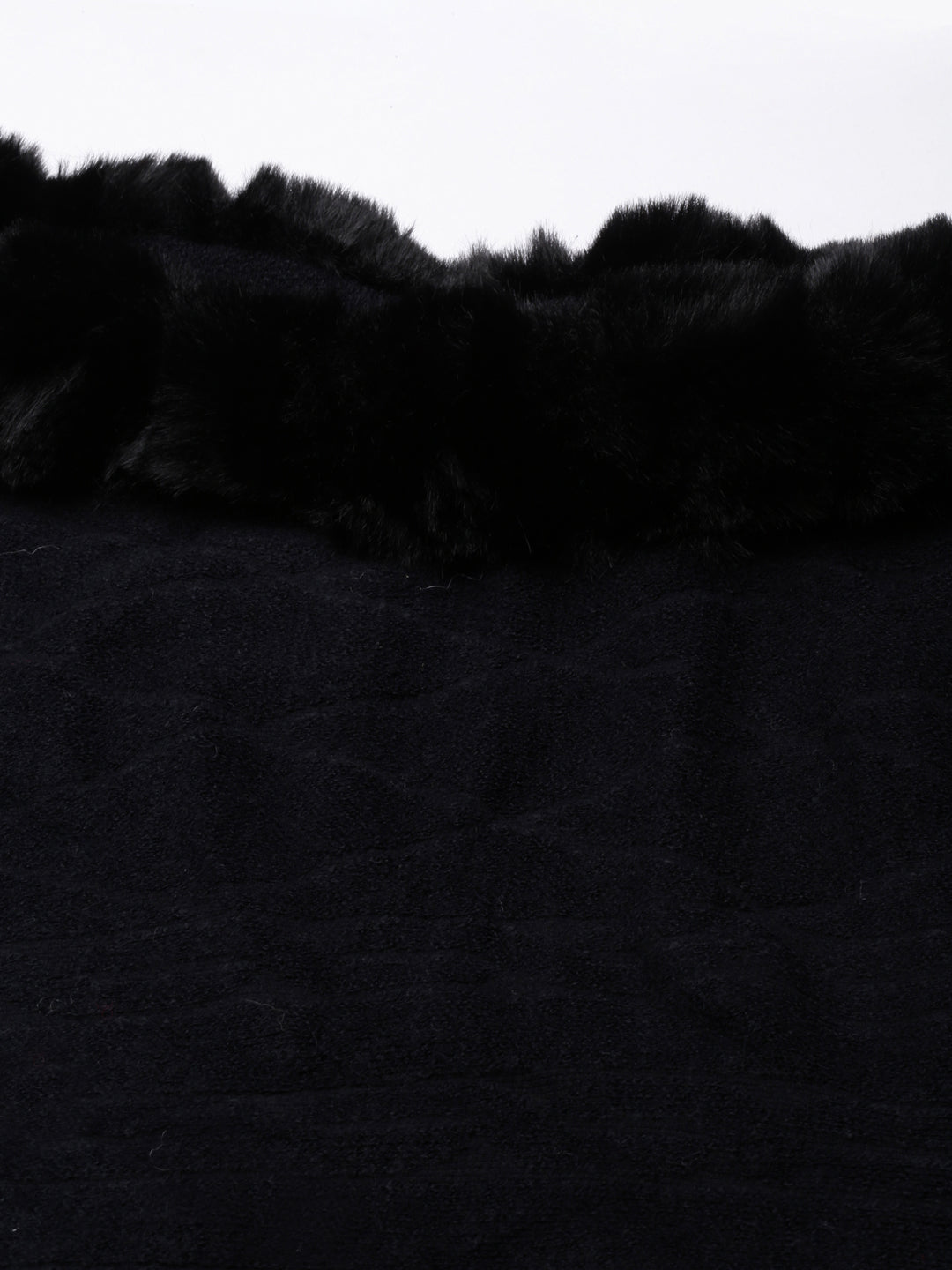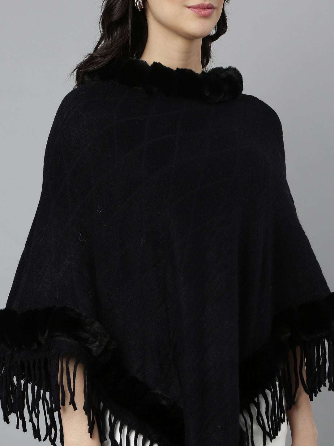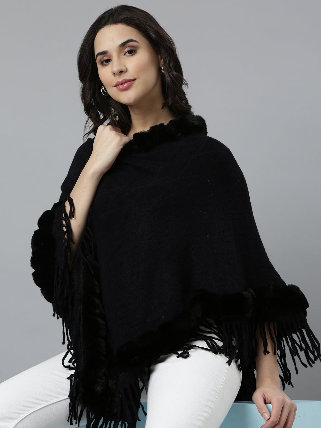 This poncho not only enhances your style but also provides comfort and warmth on chilly days. Its timeless black color ensures it pairs well with any outfit, making it a staple in your wardrobe that you'll reach for again and again.